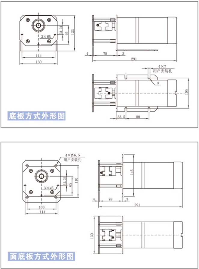 裝配90-2電機(jī)面板式安裝:(長(zhǎng)×寬×高)291×130×145(mm)
