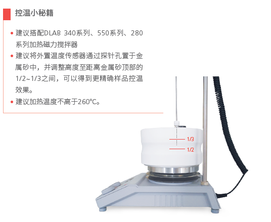 ? 模塊配有外置探針孔,搭配DLAB加熱磁力攪拌器可實現(xiàn)外部精確控溫;